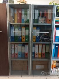 Mobili archivio per ufficio realizzati con cura da artigiano falegname locale. Struttura melamminica color grigio alluminio con ripiani regolabili in altezza. Ante in wengè massello e vetro temperato. 5 moduli affiancabili, dimensioni: largh 110, alt. 163, prof. 47 (anta inclusa). Vendesi causa ridimensionamento locali. I cinque pezzi in vendita sono stivati in magazzino. In foto vedete una parete attrezzata con i “gemelli” che attualmente vengono ancora utilizzati. In sostanza la parete in vendita ha un’anta a vetro in meno e una scaffalatura aperta in più rispetto alle foto. Valore all’acquisto superiore ai 5000,00 EUR, si vende in blocco a 850,00 EUR. Ritiro a cura dell’acquirente.