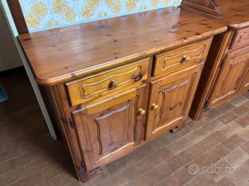 Mobili stile country composti da mobiletto basso e vetrina in legno di larice. Ottime condizioni. Vendibili anche separatamente. mobiletto 100 - vetrina 280