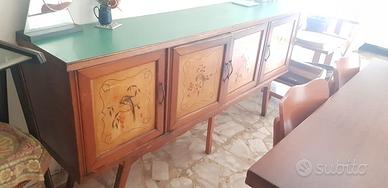 Si vendono due mobili da tinello anni 50 in ciliegio con decorazioni dipinte a mano come in foto