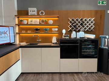 NUOVA DI EXPO Prezzo originale: €6.244,00 scontata a €1.873,00 Mobili cucina con gola, in finitura Tanno, con due cestoni frontali in finitura ghianda plissé. Composizione formata da: – Basi H85: base L60 con anta base L90 per piano cottura con cestoni base L90 con cestoni e un cassetto interno base L60 per lavello e con anta – Anta L60 per lavastoviglie – N.2 colonne con vano per forno/cantinetta L60 H106 e cestone push – Zoccolo per composizione H6 Disponibile a parte pacchetto elettrodomestici Hisense per cucina a partire da € 1.999 Offerta imperdibile per rinnovo di showroom. Possibilità di implementazione dei moduli esistenti con altre basi, pensili o colonne. Esclusi dalla composizione: elettrodomestici, lavello, piano top, miscelatore, frigorifero, mensole e pannelli in legno, oggettistica varia.