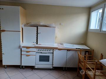 cucina completa di elettrodomestici funzionanti, letto singolo e armadio 5ante