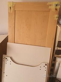 Pensile scolapiatti con due ante legno-vetro, altro pensile con anta singola legno-vetro, altri due pensili con anta in legno, pensiel angolare 60x60, altri pensili bianchi Metod, colonna forno bianca Metod 60x60x200, tavolo quadrato 80x80 circa in betulla massello. Altro piccolo mobile con sportello in betulla. In regalo due padelle antiaderenti grandi.