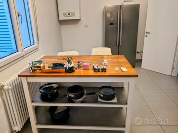 Causa trasferimento vendo cucina completa, mobili, elettrodomestici, frigo stand alone doppia porta, tavolo, sgabelli, micro onde e piccolo forno supplettivo. Da smontare e portare via a cura del compratore