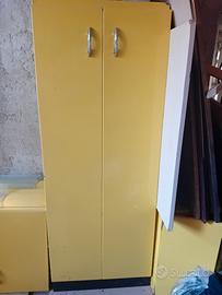 Traslocato ma mai installato, vendo mobili cucina anni 60 in metallo giallo più bancone con cassetti e ripiano in formica gialla con spalliera acciaio: