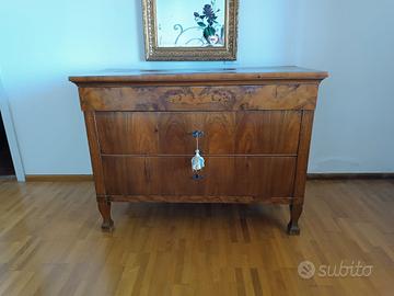 Vendo mobili d'epoca datati fine 800 primi 900 per inutilizzo. Armadio con specchio e cassettiera entrambi in radica di noce.