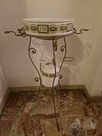 -Lavabo antico da camera in ceramica con struttura in metallo di inizio 900 (800 euro)