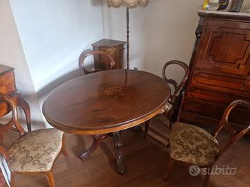 -Tavolo inglese di legno di fine 800 con 4 sedie imbottite coeve.