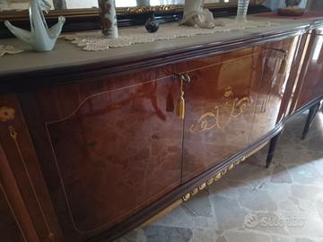 mobili antichi pari al nuovo tavolo e credenza con bellissima specchiera.