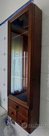 Mobile bagno colore noce ripiani in marmo con cassetto e sportello abbastanza capiente dove è possibile contenere articoli da bagno dimensioni L.49 H.138 P.40 cm. In un ripiano di marmo c'è una piccola macchia. Colonna bagno colore noce con due cassettini e sportello all'interno del quale si possono sistemare creme e profumi dimensioni L.26 H.89 P.13 cm.