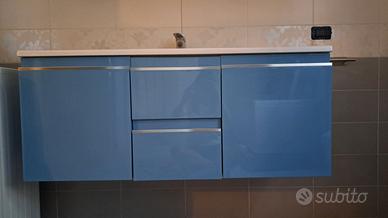 Mobili da bagno di colore azzurro laccato lucido, made in italy e di ottima qualità.