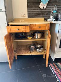Vendo 2 mobili da cucina in legno, anche separatamente, causa trasferimento. 🔹 Mobile basso con piano • Dimensioni: 80,5 × 55 × 90 cm • 2 ante + 2 cassetti • Ripiano interno • Solido, normali segni di utilizzo 🔹 Mobile alto / dispensa • Dimensioni: 85 × 42 × 157 cm • Molto capiente • Ripiani interni integri ✅ Struttura robusta ✅ Ante e ripiani in buono stato 📍 Roma 🚚 Ritiro a mano ⏱ Disponibili subito