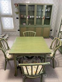 Un tavolo, quattro sedie, due servant, due credenze e una vetrina (€ 750,00 trattabili). Il trasporto è a carico dell’acquirente.