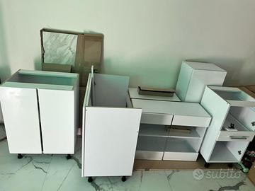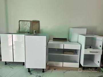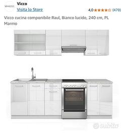 Mobili da cucina (Modello Vicco componibile Raul, Bianco lucido, 240 cm, PL Marmo) ottime condizioni, imballati come nuovi, prezzo affare €250,00