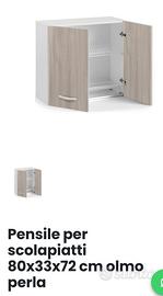 Vendo sottolavello 120x50x94 completo di lavello con due vasche inox e rubinetto miscelatore, mobile base 80x50x94, pensile scolapiatti 80x33x72 e pensile cucina 89x33x72 colore olmo perla in legno nobilitato con maniglie finitura cromata . Mobili in ottime condizioni venduti solo in blocco con in omaggio la cappa aspirante in legno multistrato verniciato con motore aspiratore Rex. Non spedisco. Per ulteriori dettagli contattatemi via mail.