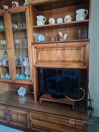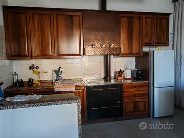 Mobili in noce massello con stufa a legna e cappa in rame. Non sono inclusi elettrodomestici.