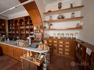 Vendesi mobili da drogheria di buona qualità: - Scaffali in legno - Espositori per prodotti alimentari e non - Bancone marmo e legno - Cassettiere con cassetti a vetro