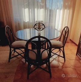 Tavolo in vetro con 4 sedie in legno: diametro 1,20 m e altezza 0,75 m