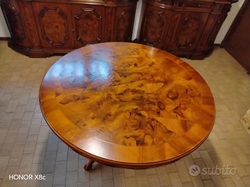Vendo bellissimi mobili antichi da salotto di radica di noce vintage composti da: credenza con vetrina, sideboard e tavolo.Non presentano alcun graffio o segno.