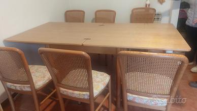 regalo mobili tavo e sedie da soggiorno... tutti in legno massello di rovere.. tavolo è 100x100cm allungabile a 2mt..... 6 sedie con schienale in paglia di Vienna e seduta in ottima (buone di struttura)... i mobili si possono unire vicini tra di loro o dividerli... questi mobili vengono ceduti in blocco...