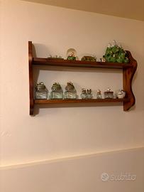 Cassa panca angolare con panche contenitive, sedie, credenza e mensola, tutto in coordinato. l 136 p 46 h 207 credenza