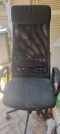 Mobili da ufficio in perfette condizioni color rovere grigio e bianco composti da: scrivania angolare 180 cm con allungo e mobile sotto scrivania con 2 sportelli, mobile medio h 129 profondità 45 e larghezza 180 cm, armadio con ante scorrevoli h 214 profondità 51 e larghezza 184 cm, sedia da ufficio girevole. Tutto il mobilio è già smontato e fornito con minuteria per un preciso rimontaggio.