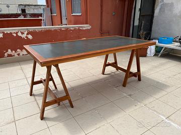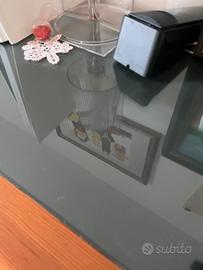 Struttura su cavalletti, manca il ripiano in vetro. Linea essenziale e raffinata.