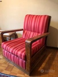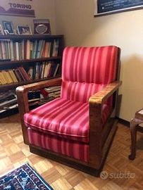 Mobili decò in radica di noce: due poltrone, un tavolo con ripiani e una credenza. Da restaurare. Misure poltrone: 67x80x67h. SOLO RITIRO zona Pavia