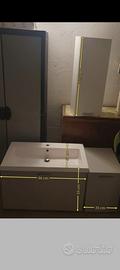 Composto da tre moduli: una cassettiera sotto il lavabo, un modulo in fianco, ed un altro modulo staccato bianco.