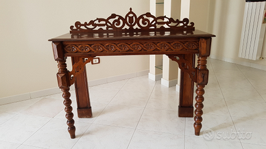 Sedia in legno intagliato con seduta in tessuto gobeline.