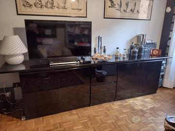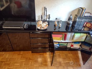 -Servante con 4 ante e 4 cassetti, in legno multistrato laccata color nero, divisibile in top e 3 moduli, misure totali L282xP50xH74cm. Prezzo euro 300,00