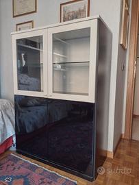 -Vetrina 4 ante in legno multistrato laccato color nero e bianco, misure L96xP45xH135cm, pari al nuovo. Euro 200,00.
