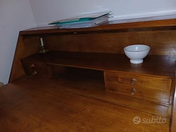 comò, copritermosifone, copia di mobiletti bagno in ciliegio con specchio, coppia poltrone inglesi '800