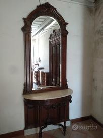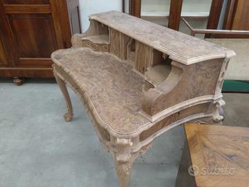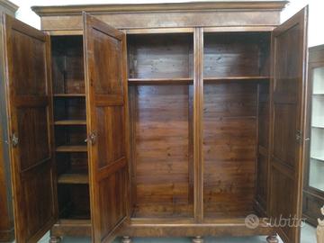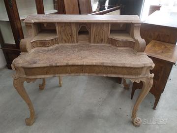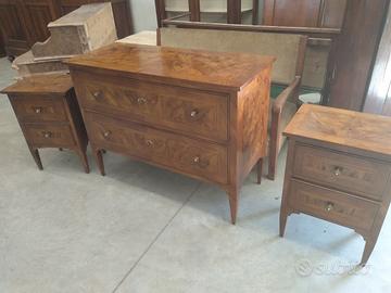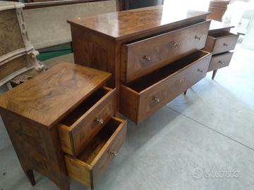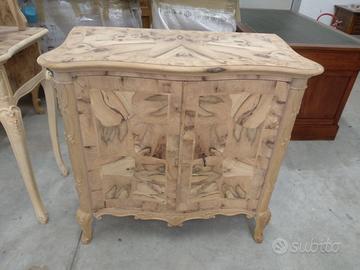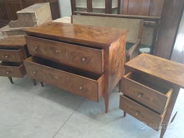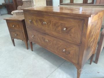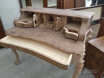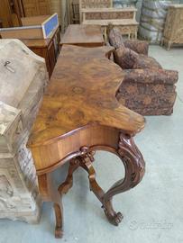 armadio 3 ante in noce originale primi 800 lungh.270 h 270 p.68 con ripiani interni. 11.500,00 scrivania in ciliegio 3 cassetti con 2 ante fine 800 con piano in pelle originale. 1.300,00 vetrina rifatta in abete vecchio lungh.180 h 285 prof.50 con 2 ante sotto chiuso sopra vetro con serratura. 1.300,00 scrittoio in radica di castagno fatta amano con alzatina e vari cassettini lungh.130 p 75 h 110. 3.000,00 comoncino radica di noce fatta a mano con interno in abete lungh. 105 p 52 h 100.990,00 consolle radicato a mano di noce con intagli e finita a mano lungh. 150 prof.50 h 100. 1.050,00 credenza 2 in abete originale e restaurate con 2 ante e serratura lungh.160 prof.54 h 107. 600,00 cadauna 1 comò e 2 comodini radicati in noce a mano e lucidato a tampone stile impero misura lungh.124 prof.52 h 94 comodini lungh.54 prof.37 h 73 complete di cassetti con chiave. 1.800,00 credenza laccata bianca con 2 porte in abete originale con serratura lungh 152 prof.50 h 110. 780,00 vetrina originale 700 con 2 ante in vetro con cassetto lungh. 135 h 270 prof.40. 1.990,00 consolle con specchiera originale misura lungh. 112 h 91 totale 280 prof.45. 1.600,00 cassettone radica di noce con interno in abete con 4 cassetti lungh. 125 prof.58 h 105. 1.300,00 como settecentesco radicato a mano in noce con 2 cassettoni con finitura a tampone lungh. 160 p.55 h 102. 1.300,00 burreau 700 veronese in radia di noce con 3 cassetti e ribalta con vari cassettini e segreti lucidata a tampone. 1.890,00 altri modelli disponibili fino ad esaurimento disponibilità a magazzino, prezzi riguardanti come visto in foto e presa visione in loco se finito o al grezzo da richiedere in caso di vero interessamento. disponibilità da subito con possibilità di spedizione in tutta italia presso vs abitazione. contattare solo se veramente interessati. contattare solo se veramente interessati. chiamare solo se interessati