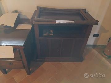 Credenza 2 ripiani con 3 sportelli sopra e 3 sotto + tavolo da cucina + 6 sedie + 2 divani a due posti + 1 comodino due cassetti + 1 mobilino doppia anta, per info e prezzi in