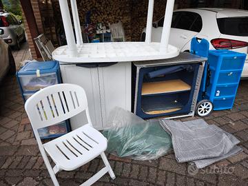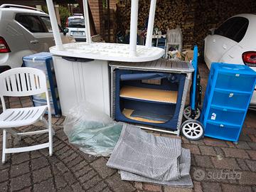 Vendo tutto a 250€ trattabili zona schio Mobile da fornello, 2 armadietti, 1 armadio doppia ante, carellino, tavolo per 4 persone "Nardi con 4 sedie e due stuoie usate una sola stagione