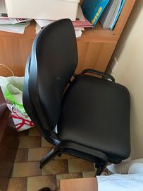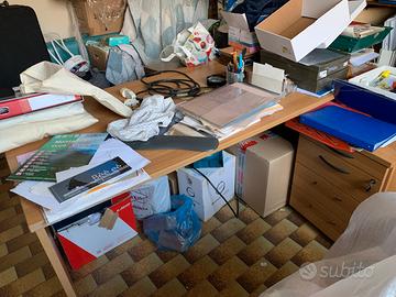 2 Mobili: armadio e armadio con libreria, scrivania con cassettiera, 2 sedie ospite, poltrona regolabile in pelle, da ufficio, usate in privato-casa. In legno laminato in ottimo stato, tranne le maniglie cassettiera da sostituire. Ritiro in loco.