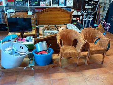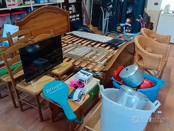 Causa trasloco svendo mobili e attrezzature come da foto. Letto matrimoniale Sedie Comodino Tavolino Televisione Bici per bambina Attrezzature palestra Altro