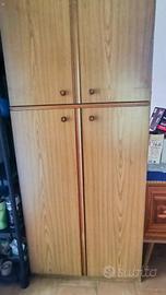 Armadio 4 ante due piani H 243, p 56, l 220 -- € 60,00 / Armadio 2 ante 2 piani H 204, p 58, l 90 -- € 40,00 / Mobile 4 ante intarsiato H 84, p 47, l 170 -- € 60,00 / Mobile vetrina, 2 sportelli, 1 cassetto H 84, p 47, l 150 -- € 60.00 / Stufa a gas 4 fuochi H 90, p 65, l 60 -- € 50,00 / Mobile libreria + 5 cassetti H 188, p 64, l 91 -- € 30,00