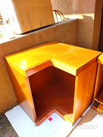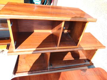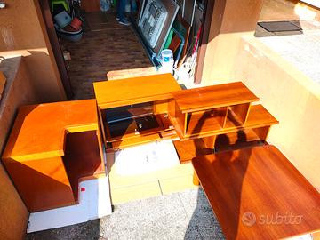 Arredamento da salotto composto da: - un mobile ad angolo con anta in vetro; - una piccola credenza con ante in legno; - un mobile con ante a vista e in vetro; - un tavolino da caffè. Tutto in stato di buona conservazione.