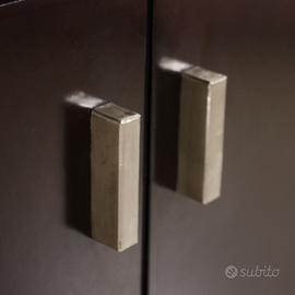 battenti in vetro fum, legno impiallacciato Palissandro tinto.