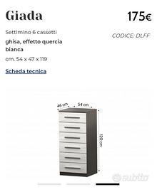 Vendo, Cassettiera, Settimino e 2 comodini,Giada mondo convenienza, Colore Ghisa -Guercia Bianca. In foto le misure e i singoli prezzi del nuovo. vendo tutto a 200€.