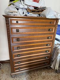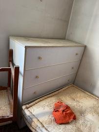 REGALO questi mobili per sgomberare casa di mia nonna. Come da foto: Credenza in legno con vetrinette di vetro, mensole e cassetti Mobile contenitore in legno con vano contenitore nascosto Cassettiera in legno marrone alta e molto capiente con cassetti di verse altezze Cassettiera in legno bianca alta con cassetti molto alti e profondi REGALO TUTTO ma non forniamo noi trasporto e smontaggio