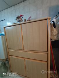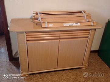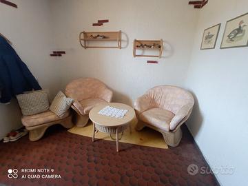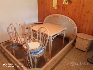 Vendo come da foto, arredamento in bambu pegiato . Letto ,comodini, tavolo con 4 sedie, credenza piccola, credenza grande salottino completo più mensole tutto in ottimo stato