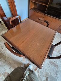 tavolo quadrato allungabile con 4 seggiole con seduta in pelle.