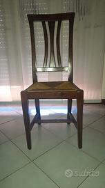 6 sedie con seduta in paglia in arte povera con piccole sistemazioni da effettuare.