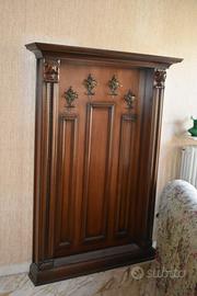 -sedia a dondolo e appendiabiti in legno intarsiato