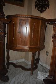 -sala da pranzo composta da un tavolo e credenze in legno noce intarsiato con certificato di garanzia