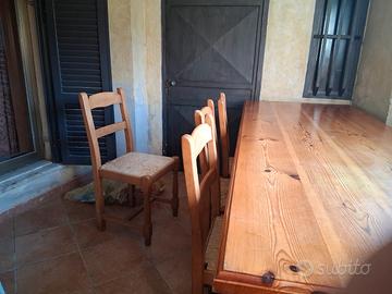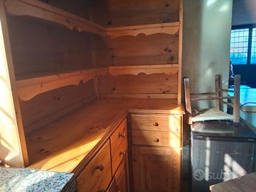 credenza tre ante con piattiera a giorno ,più credenza due ante con base marmo granito,più tavolo e sei sedie
