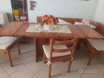 -panca angolare composta da una di cm. 70x43x48 h schienale cm. 83H , un'altra cm. 120x43x48H schienale cm.83H e angolare di congiunzione con schienale cm.60 circa , le due panche sono apribili con un contenitore di circa cm.15 H