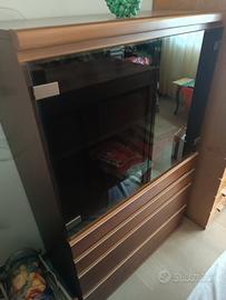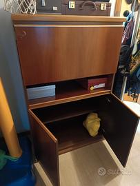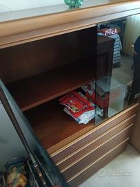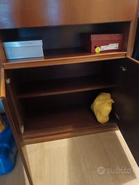 Regalo 2 mobili in legno di uguali misure: 1 con vetrina fumé e cassetti, l' altro con ribalta frontale e cassetti. Trasporto a carico di chi li viene a prendere, grazie. misure: h 143cm, larghezza 90, profondità 47.